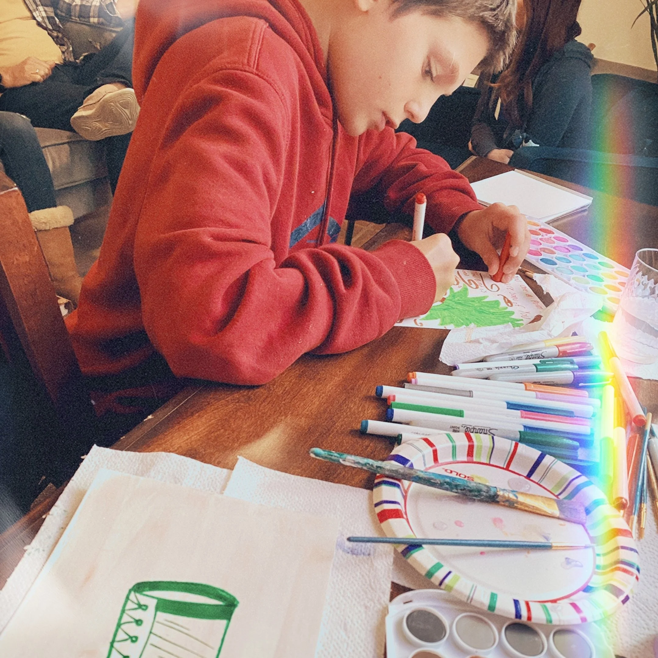 The testimony that will be pulling on my momma heart strings all week is that TODAY Jayden embraced the discomfort of unfamiliarity and soared. He sat next to me in a room filled with adults prophesying and prayed over people as they came into the room. he one by one released prophetic art and words of life and encouragement over them.