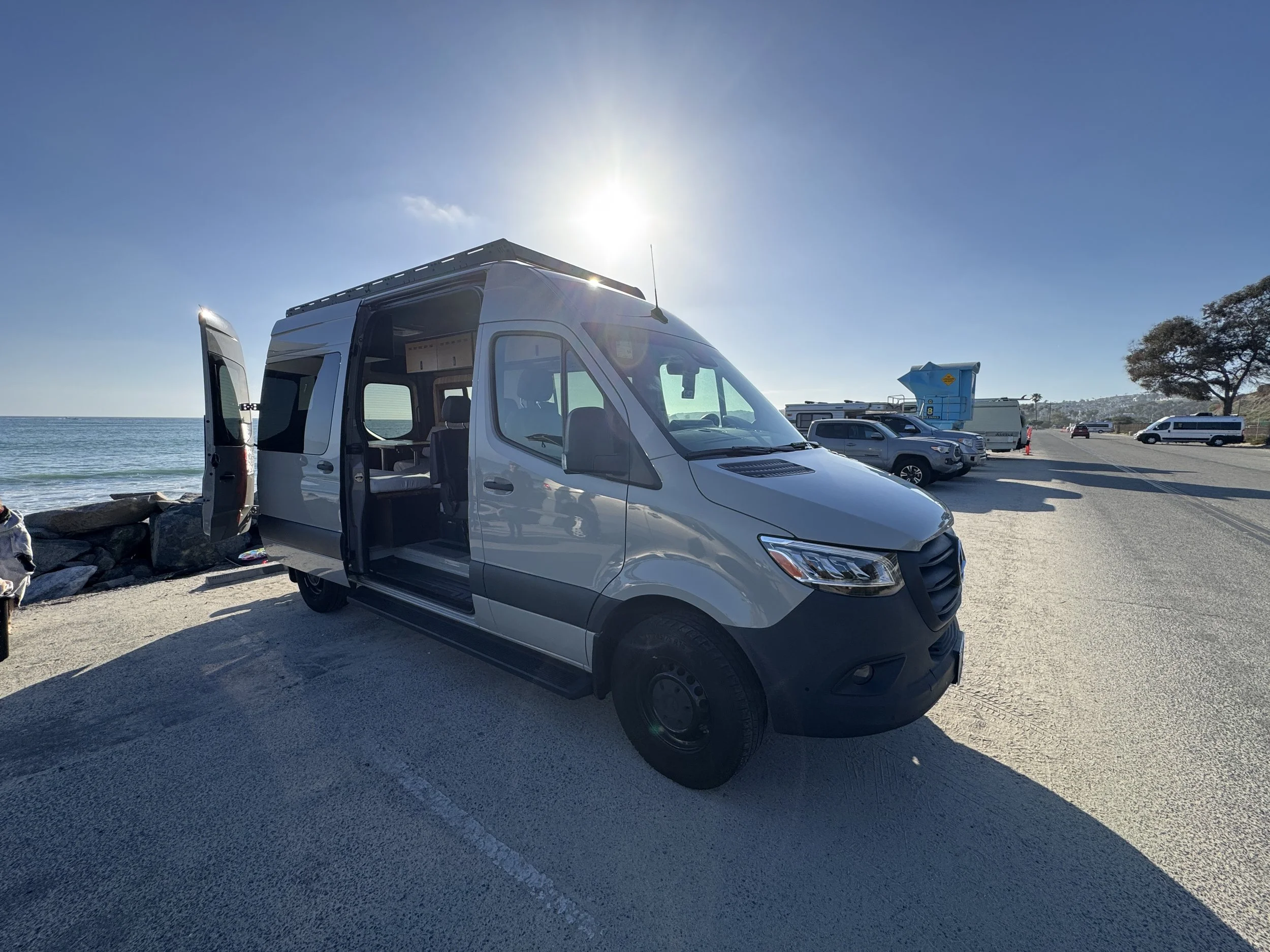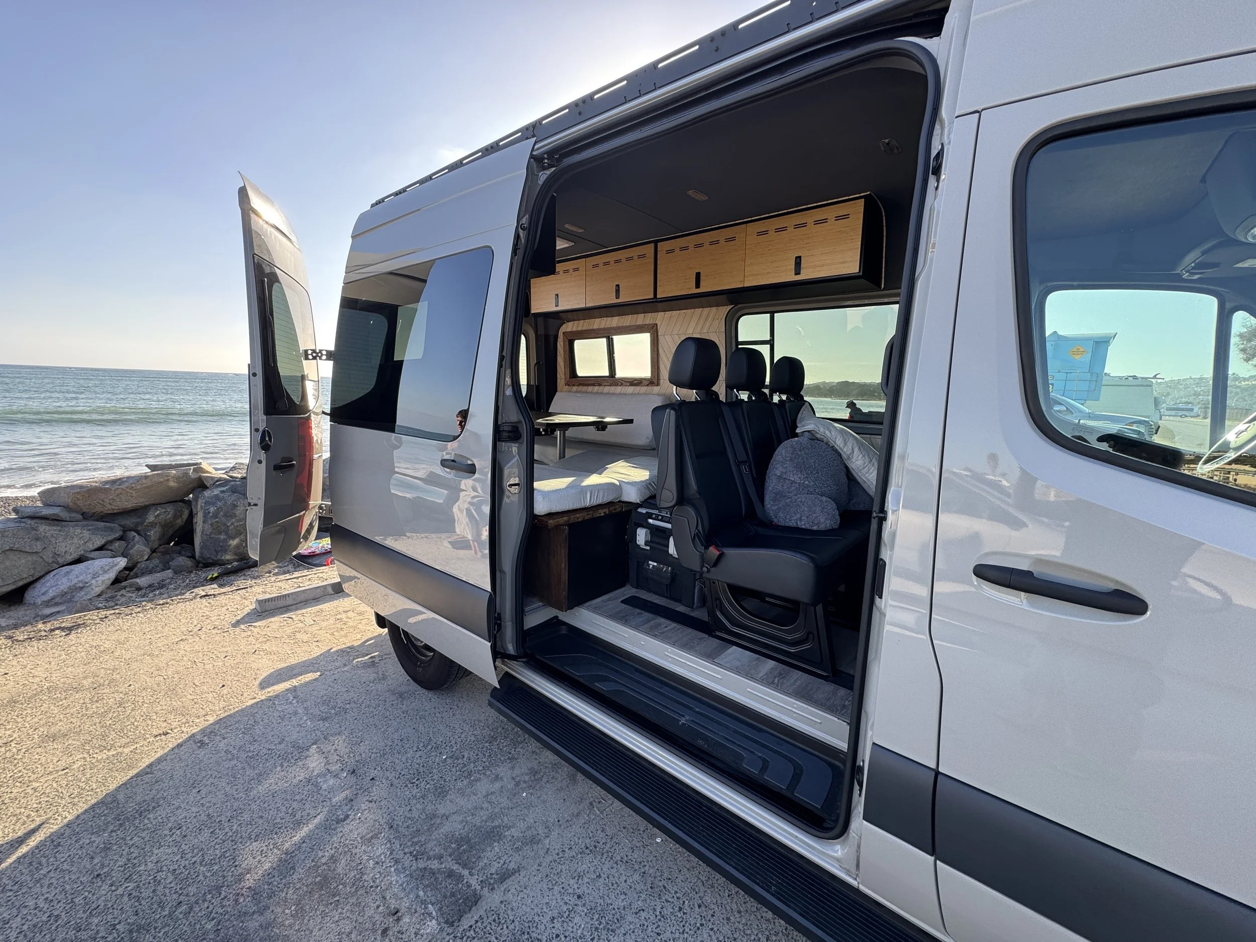 Our 144” High Roof Sprinter is fully equipped for comfort and simplicity — perfect for coastal weekends, mountain escapes, or long-haul adventures.